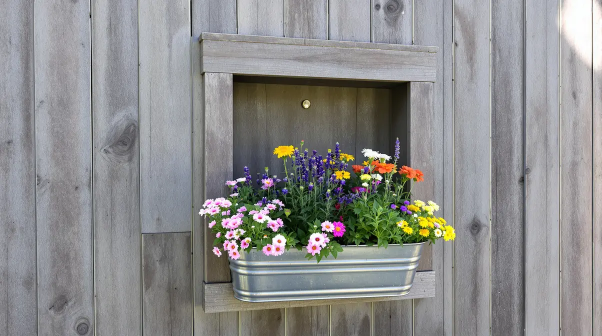- Fixer une petite jardinière juste en dessous sur le mur d’un cabanon.